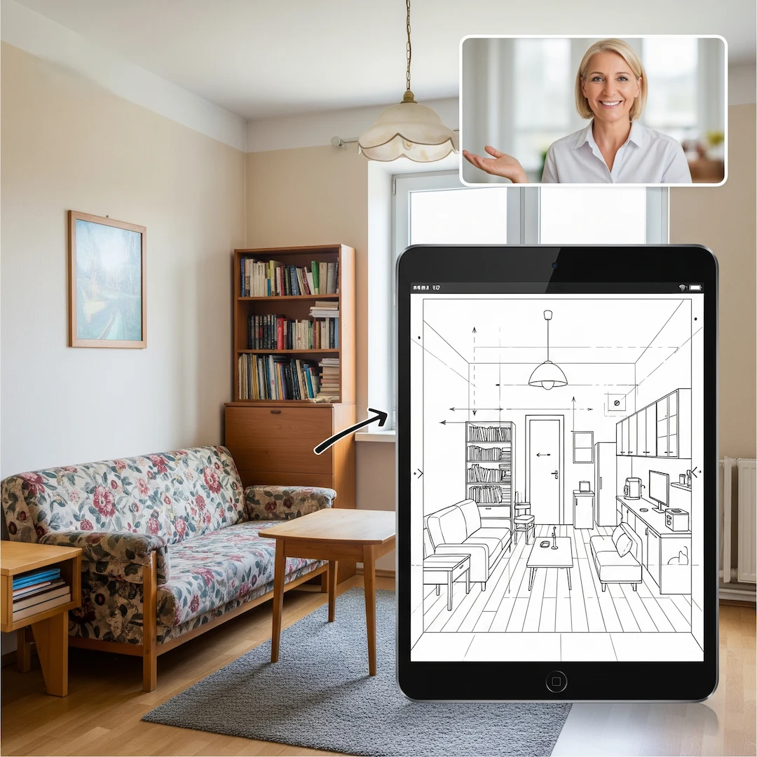 Umfassendes Raumkonzept für einen kleinen Raum ( bis 20 qm) mit bestehenden Möbeln